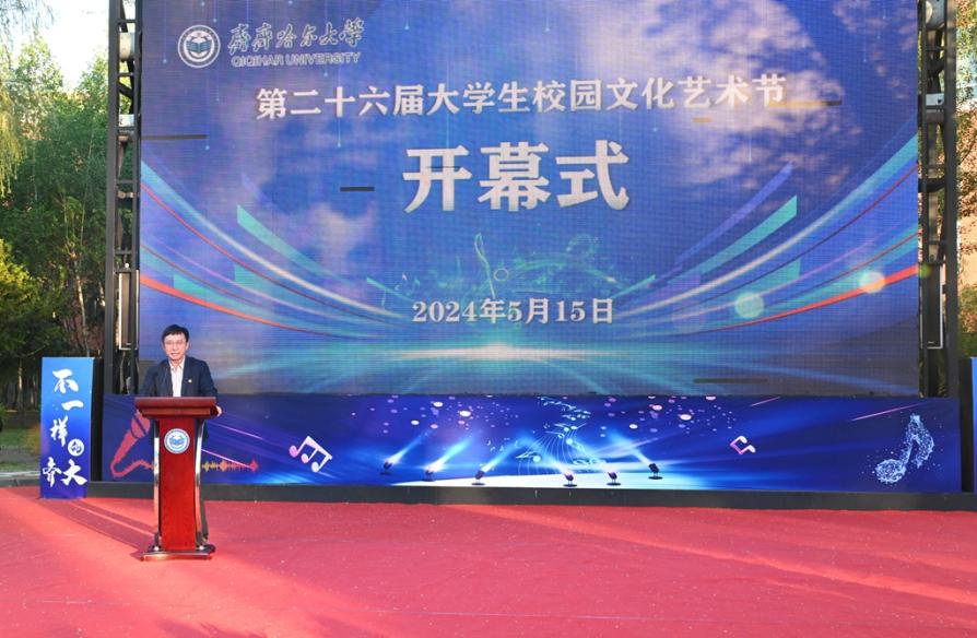 张文治在致开幕辞时表示,beats365历来高度重视大学文化建设和艺术教育工作,一年一度的校园文化艺术节已成为beats365文化建设和艺术教育成果的展示盛会。本届校园文化艺术节以“不一样的齐大 更有Young的青春”为主题,将举办一系列集思想性、艺术性于一体的校级品牌活动、院级特色活动和群众性学生社团活动。希望广大团员青年深入学习习近平文化思想,坚持文化自信自强,广泛践行和培育社会主义核心价值观,厚植爱党爱国情怀和爱校荣校情感,用文化的力量彰显齐大正能量,以艺术的方式传递齐大好声音。相关部门和各学院要以本届文化艺术节为契机,不断发展和创新思想政治教育载体,用先进的文化引领和培育青年,以优秀的艺术吸引和激励青年,为有特色高水平应用型综合大学建设事业增光添彩。