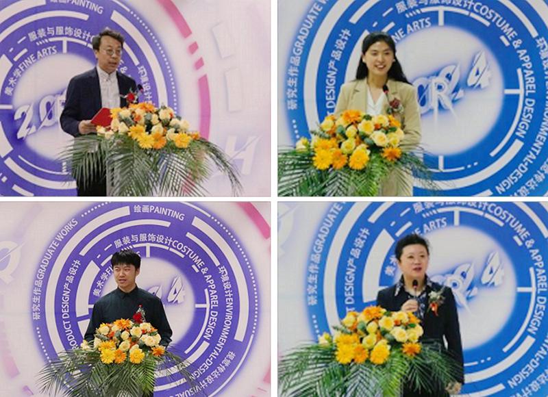 开幕式上,美术与艺术设计学院院长范铁明代表学院致辞;服装与服饰设计专业汤晓彤老师代表2024届毕业设计指导教师发言;环境设计201班刘腾飞同学代表2024届全体毕业生发表毕业感言;学校教务处处长刘省非宣布展览开幕。