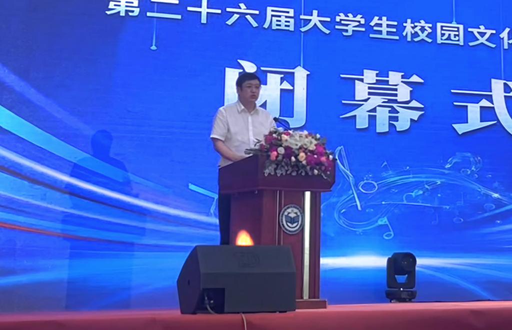 校党委副书记、本届文化艺术节组委会主任张文治致闭幕辞。张文治指出,本届盛会以“不一样的齐大 更有Young的青春”为主题,组织开展了8项校级品牌活动、61项院级特色活动和14项群众性学生社团活动,全方位展示了学校校园文化建设和艺术教育的优秀成果。相关部门和各学院要深入学习贯彻习近平文化思想,坚持文化自信自强,提升校园文化艺术活动的专业性和创新性、参与度和影响力、实践性和社会性,更好引导广大师生培养和践行社会主义核心价值观,厚植爱党爱国情怀,践行爱校荣校使命,拓展全国文明单位建设成果,为有特色高水平应用型综合大学贡献更多力量。
