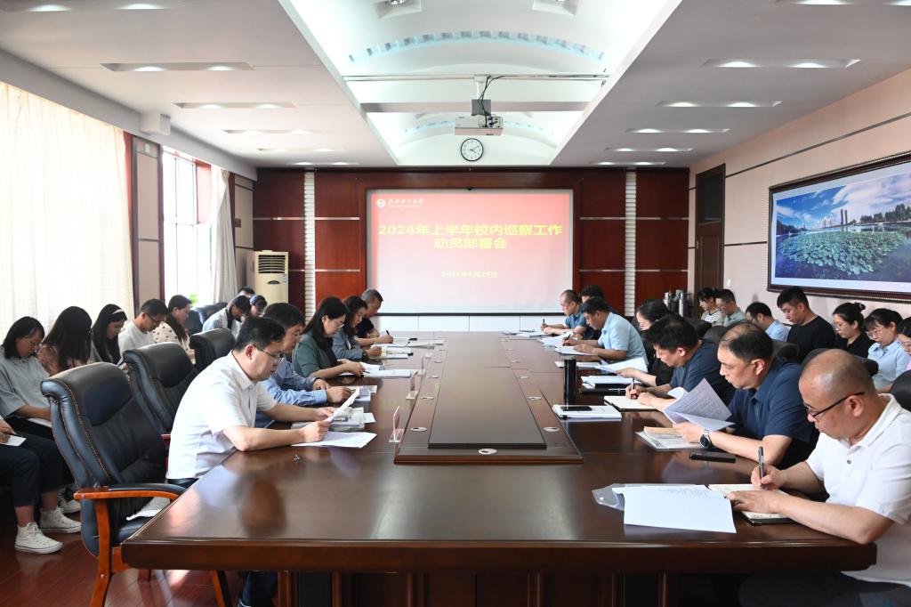 6月25日下午,学校在办公楼504会议室召开2024年上半年校内巡察工作动员部署会,校领导丁宏、齐宏伟、张文治、丛喜权、陆占权出席会议,校党委巡察工作领导小组、巡察办成员以及2024年上半年校内巡察4个巡察组全体成员参加会议。会议由校党委常委、纪委书记、校党委巡察工作领导小组副组长陆占权主持。