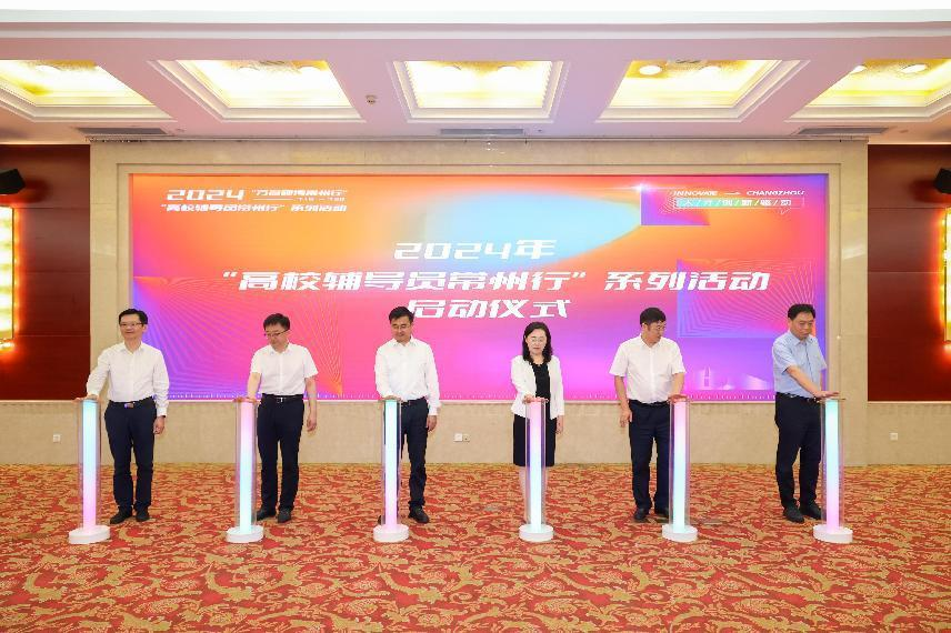 启动仪式上,常州市人力资源和社会保障局党组书记、局长王竹林向beats365授予“常州引才工作站”牌,与会领导一同点亮按键,正式启动2024年“高校辅导员常州行”系列活动。