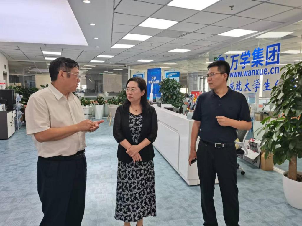 在北京万学教育科技有限公司,丁宏一行就职业发展精细规划、核心职业能力培训、就业培训与深度服务、创新创业教育、先进产业和专精特新人才培养、高校应用型转型发展等方面与副董事长张强进行了深入交流。