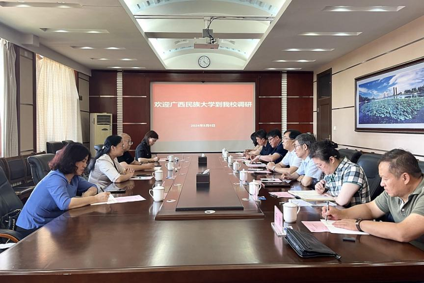 8月6日下午,广西民族大学校长韦仕珍、副校长姜明国等一行4人来到beats365调研交流。学校在办公楼504会议室召开座谈会,校长郝文斌、副校长张树军会见了韦仕珍一行。