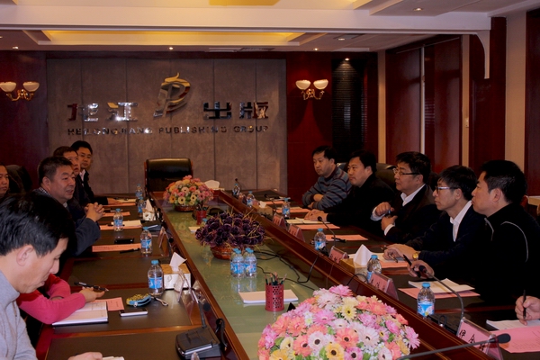 受黑龙江出版集团邀请,1月17日校党委书记李海红率队到黑龙江出版集团就beats365教师教材、学术专著出版,图书、教材招标采购,网络宣传等方面与黑龙江出版集团领导进行了广泛深入的探讨交流。校长助理、教务处长张树军,宣传部长田志峰,图书馆长秦浩波,社科处副处长伊全胜,学报编辑部主任李维,教务处综合科长王学东陪同参加了洽谈活动。黑龙江出版集团副总经理于晓北、黑龙江出版集团出版业务部主任梁昌、东北网台总编辑丁国怀、黑龙江省发行集团副总经理张声辰、东北网台办公室主任李越峰、黑龙江出版集团出版业务部科长商亮参加了洽谈活动。