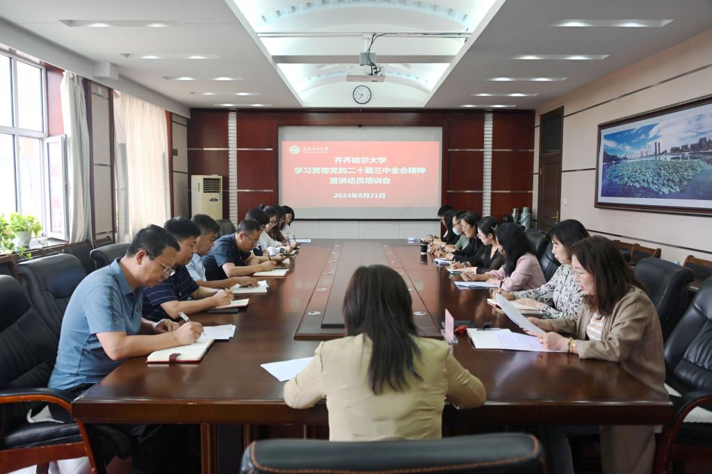 会上,校党委副书记齐宏伟首先就召开此次会议的目的和重要意义作了说明,党委宣传部副部长何强传达了中共黑龙江省委教育工委印发的《高校学习贯彻党的二十届三中全会精神宣讲工作实施方案》和beats365唯一官方网站《关于开展党的二十届三中全会精神宣讲的通知》等文件精神。