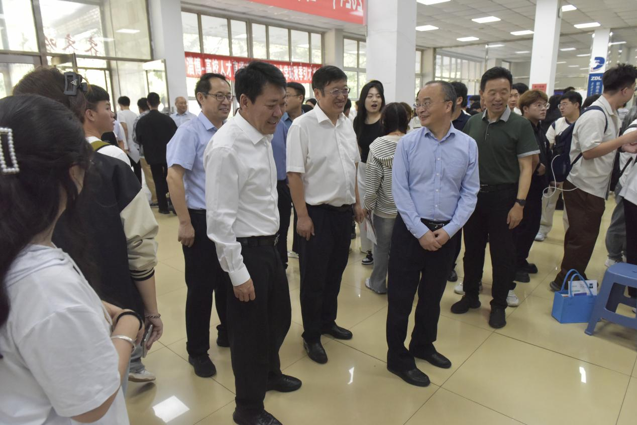 座谈会后,与会领导共同参观校史馆,并到招聘现场进行巡视指导。