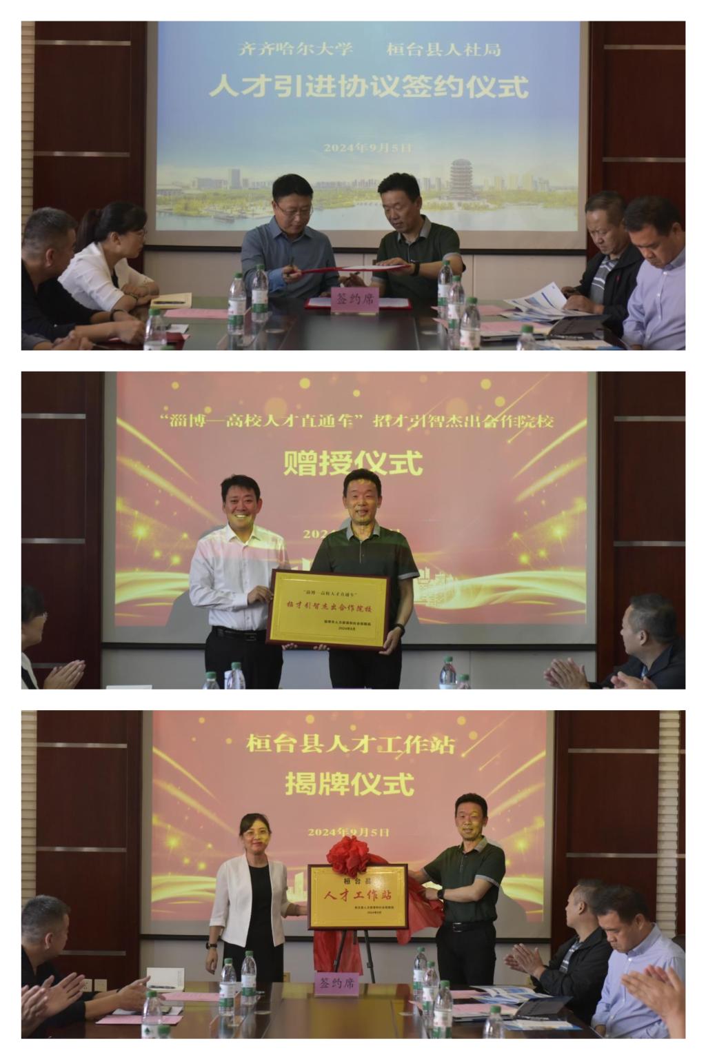 学校分别与淄博市和桓台县进行校地合作签约及授牌仪式。
