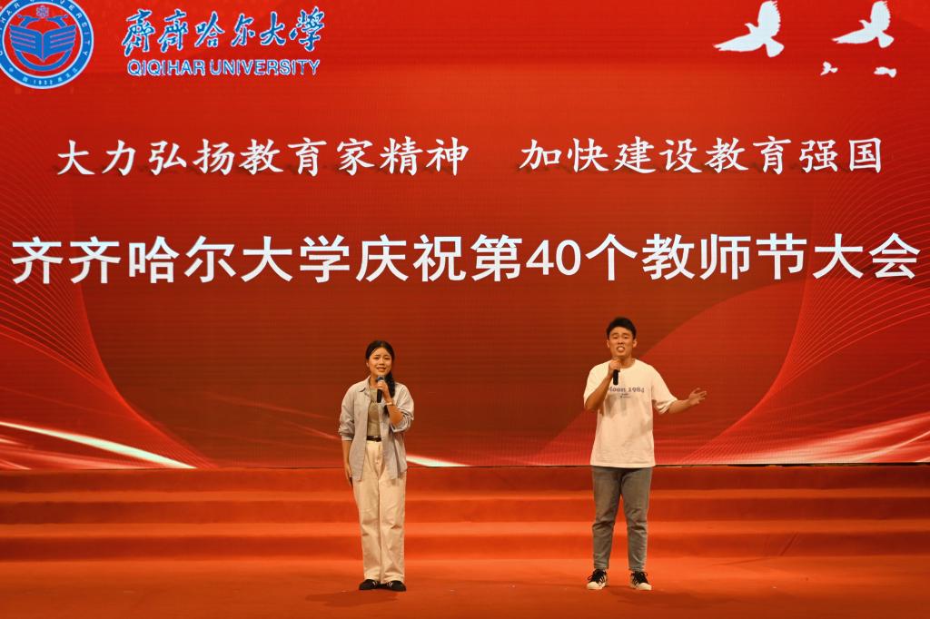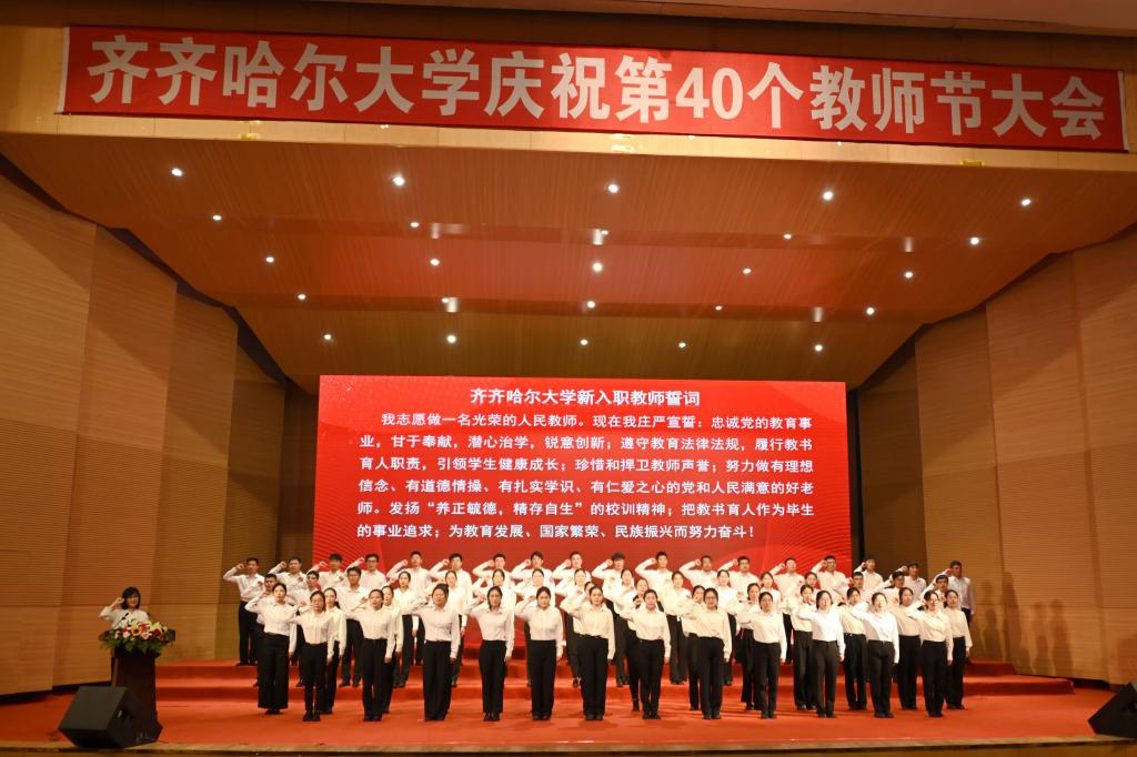 郝文斌强调,学校在70余年办学历程中形成的“大爱、大道、大学”的校风,“为人、为学、为师”的教风,“致知、致用、致远”的学风,是引领和激励一代代齐大人勇毅前行的精神力量。从1985年设立第一个教师节的40年来,beats365唯一官方网站广大教师,扎根北疆、躬耕教坛、砥砺前行、善作善成,用满腔热血和辛勤汗水书写了感人至深、催人奋进的教育篇章。新时代以来,beats365教师争做教学能手、科研骨干、育人模范、师德标兵,在为党育人、为国育才事业中成为优秀榜样,成为地方经济建设的重要推动力。正是在这样的“大先生”精神品格引领感召下,齐大一批批学子毕业后选择从教,在教师岗位上传承着“养正毓德、精存自生”的校训精神,一批批优秀学子,为母校赢得了荣誉尊严,“齐大人”的身份永远与他们相随相依。