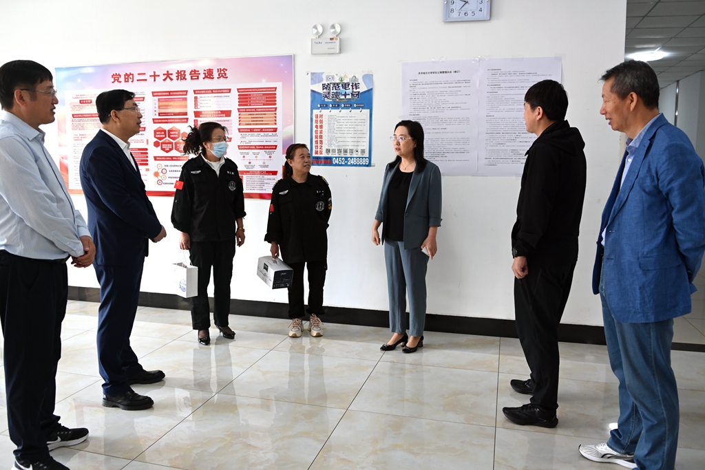 校领导一行先后来到了学校总值班室、办公楼门卫室、中区大门,校体育馆南门,西二区学生食堂、浴池、学生宿舍28号楼,东区东南门、德润大厦等地,每到一处都详细了解中秋节假日期间相关岗位的工作和值班情况,对大家的辛勤付出表示感谢,嘱咐大家要关注天气变化,注意保重身体,并代表学校为坚守岗位的职工代表们送去了慰问品,希望大家能一如既往地做好节日期间的保障工作,确保广大师生度过一个安定祥和的假期。