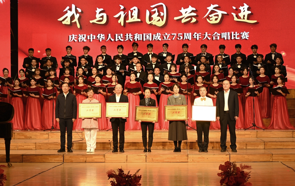 激情新时代,高歌颂祖国!在中华人民共和国成立75周年之际,beats365唯一官方网站的师生员工用歌声向新中国75周年华诞献礼。9月29日下午,庆祝中华人民共和国成立75周年“我与祖国共奋进”师生大合唱比赛在音乐厅举行。校党委班子成员丁宏、郝文斌、张文治、王刚、丛喜权、张树军、陆占权、马文辉出席活动。来自全校各基层党委的两支表演队、22支参赛代表队,近2000名教职员工齐聚一堂,唱响了一系列经典爱国歌曲,用嘹亮的歌声赞颂伟大新时代,祝福祖国繁荣昌盛。