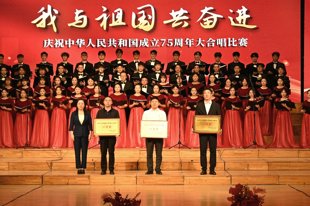 活动的最后,现场全体人员起立,齐唱《我和我的祖国》,大合唱比赛在热烈的气氛中圆满结束。