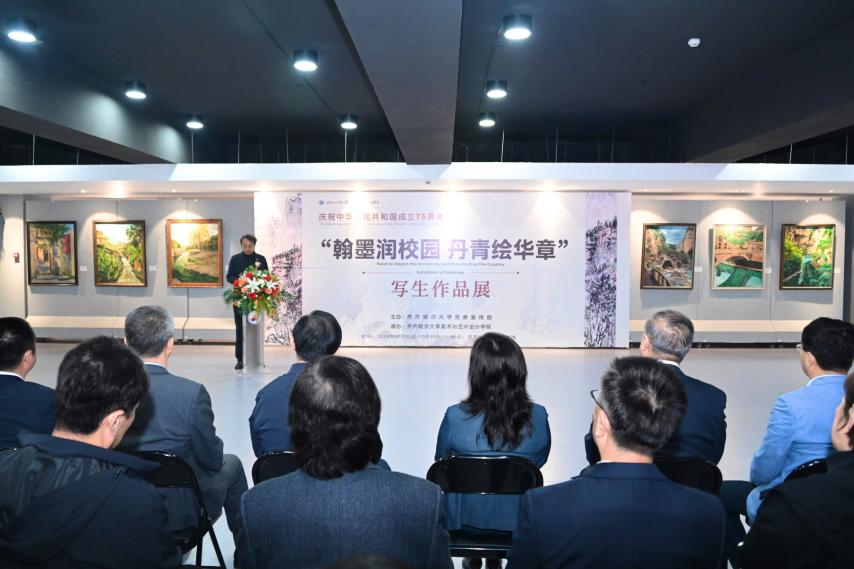 为庆祝中华人民共和国成立75周年,9月30日上午,学校在东区美术馆举办“翰墨润校园丹青绘华章—写生作品展”。校领导丁宏、郝文斌、王刚、丛喜权、陆占权出席并参观展览,市梅里斯区区委、美术家协会、书法家协会、鹤城创业设计服务有限公司,beats365美术与艺术设计学院实习基地相关领导,学校相关部门负责人、美术与艺术设计学院师生代表参加开幕式。开幕式由美术与艺术设计学院副院长李立立主持。