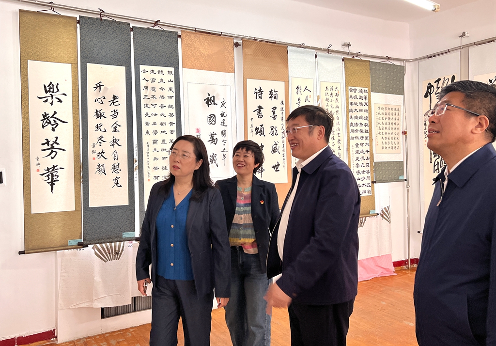 党委常委、组织部部长马文辉和学校办公室、机关党委、宣传部相关负责人,学校部分师生和离退休老同志参观了书画展。书画展将持续到10月15日。