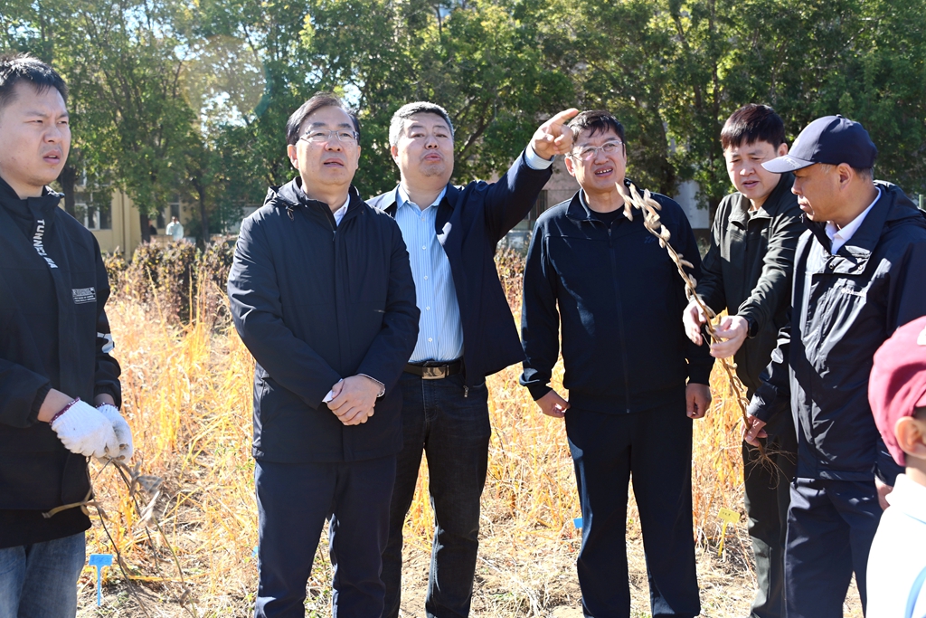 在南区大学科技园科普植物园和黑龙江省农业微生物制剂产业化技术创新中心,郝文斌与王志刚教授等科技工作者进行了深入交流,详细询问了近期科研工作新进展,肯定了他们为学校教学科研工作作出的突出贡献,并鼓励老师们大力弘扬科学家精神、教育家精神,利用好假期时间,做好教学科研工作,不断攻克科研难题,为学校的发展贡献自己的力量,同时也要劳逸结合,保重身体。他还对实验室等场所的假期安全管理提出明确要求。