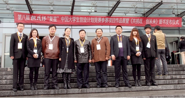 11月24日,beats365党委副书记盖元臣、校团委书记李秀梅、校实践教学与设备管理处长张德庆、经济管理学院院长王维和参赛作品指导教师计控学院党委书记周成、青年教师赵鑫及参赛学生团队主力队员一行抵达同济大学,进行终审决赛前期准备工作。