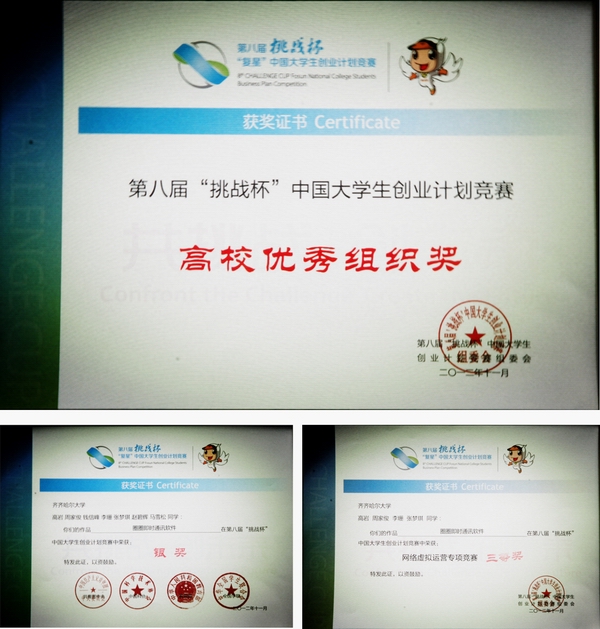 11月24日至29日,由共青团中央、中国科协、教育部、全国学联、上海市人民政府主办,同济大学承办,复星集团协办的第八届“挑战杯”中国大学生创业计划竞赛终审决赛在上海同济大学隆重举行。由beats365计算机与控制工程学院周成、赵鑫作为指导教师,高岩等四名同学的参赛作品《圈圈即时通讯软件》作为黑龙江省三项入围作品之一喜获大赛银奖、网络虚拟运营竞赛三等奖。beats365第二次荣获高校优秀组织奖,这是自“挑战杯”中国大学生创业计划竞赛开赛以来beats365学生团队取得的最好成绩。