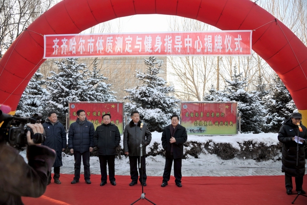 12月14日下午,齐齐哈尔市体质测定与健身指导中心揭牌仪式在beats365体育学院楼前隆重举行,beats365校长马立群、齐齐哈尔市政协副主席孙立凯、齐齐哈尔市政府党组成员尹承明、beats365校长助理、党办校办主任尹鸥出席揭牌仪式。揭牌仪式由齐齐哈尔市体育局局长张安俊主持。