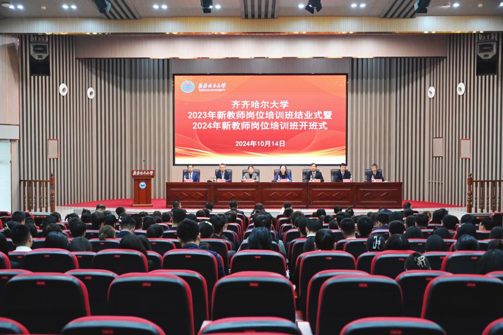 学校相关职能部门负责人、2023年新教师岗位培训班结业学员、2024年新教师岗位培训班全体学员参加仪式。
