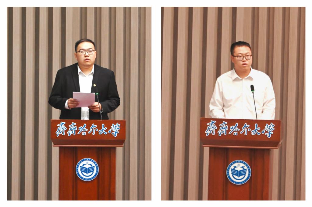 丁宏从躬身践行教育家精神、科学规划从教生涯、传承校风铭记校训三个方面,与大家进行了深入交流。一是躬身践行教育家精神,做引领学生成长成才的筑梦人。学校广大青年教师要自觉践行教育家精神,以教育家为榜样,让教育家精神成为“心之所向”。躬身践行教育家精神,需要筑牢立身从教、教书育人的信仰之基,强化职业道德、高尚师德的自觉自律,打牢终身学习、完善自我的基石基础,树牢求是创新、提升本领的思想观念。二是科学规划从教生涯,在珍惜职业荣光中履行教书育人使命。新入职的青年教师应以实际行动履行好教书育人职责,要珍惜教师职业荣光,把对教师职业的理解上升为应有的品质高度;要做好专业发展规划,持续锻造从教执教的能力和本领;要不断提升教学能力,争做潜心治学的教学能手;要积极参与有组织科研,注重加强拔尖创新人才培养。三是传承校风铭记校训,做爱校荣校兴校的积极践行者。建校72年来,学校秉承“艰苦奋斗、奉献边疆”的办学传统,形成了“大爱、大道、大学”的校风,铸就了“养正毓德、精存自生”的校训。广大青年教师要赓续传承“齐大精神”,拿出干事创业“比学赶超”的精气神,练就干事创业“创优争先”的真本领,持续为学校发展赋能增量。要将个人发展融入学校发展建设中,让“爱校”成为行为习惯,让“荣校”成为文化自觉,让“兴校”成为共同的使命担当,树立“齐大是我家、我爱我的家”的理念,实现个人成长和学校发展的“双向奔赴”。