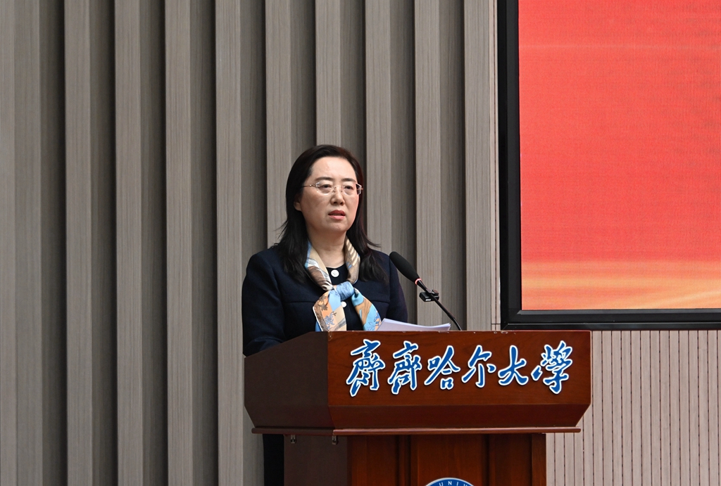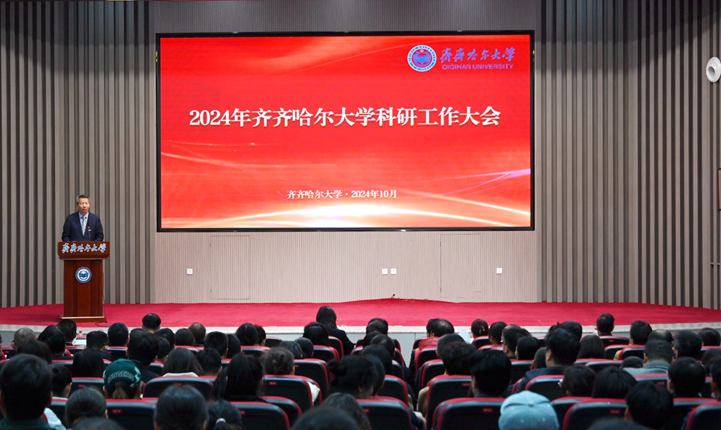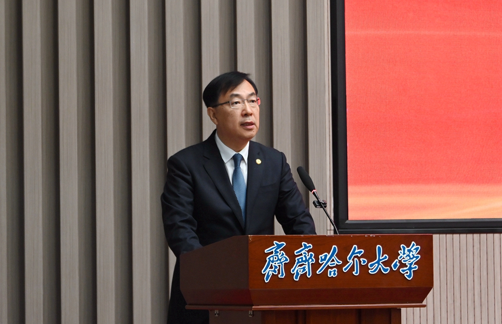郝文斌在讲话中代表学校,以“践行新质生产力理念,彰显科研优势特色,加快建设有特色高水平应用型综合性大学”为题,从近五年科研工作的主要成效、目前科研工作存在的问题、未来三年科研工作部署三个方面,作了科研工作报告。郝文斌指出,五年来,学校科研工作坚持问题导向、需求导向、产业导向,聚焦国家战略需求和区域经济社会发展,立足服务创新龙江建设和“4567”现代产业体系,加强基础研究、强化应用研究,以提升学校科学研究水平和服务区域经济社会发展能力为目标,在自主创新能力、科技成果转化、高层级奖项等方面取得突破性进展和重要标志性成果。未来三年学校科研工作的总体思路:深入学习贯彻习近平总书记关于科技创新和哲学社会科学重要论述,认真贯彻全国科技大会、全国教育大会精神,按照全省科技大会、科学技术奖励大会工作部署:一是要明确科研主攻方向,深化科技创新与产业创新;二是要谋划“大”项目,找准科研突破口;三是要建“真”团队,解决“真”问题;四是深刻洞察并精准把握党和国家政策指向,紧扣国家战略和区域发展需求,确保“十五五”科研规划的前瞻性与系统性,为高质量发展注入源源不断的创新动力。他从强化有组织科研、加强应用研究、建强科研平台等七个方面,进行了工作部署,希望广大科研工作者深入践行新质生产力理念,为加快实现国家高水平科技自立自强贡献齐大智慧和力量!