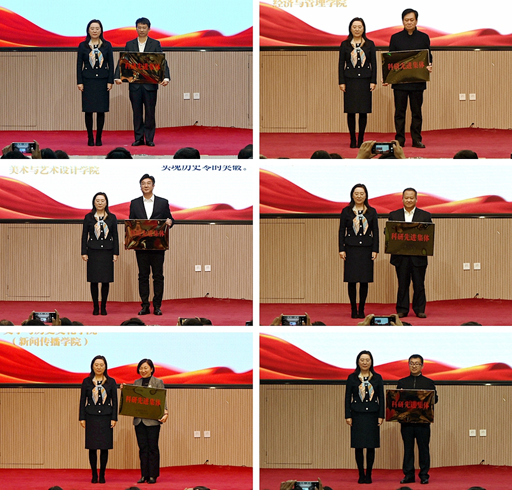校党委书记丁宏,校长、党委副书记郝文斌,校党委副书记齐宏伟为获得表彰的科研先进集体和先进个人进行了颁奖。