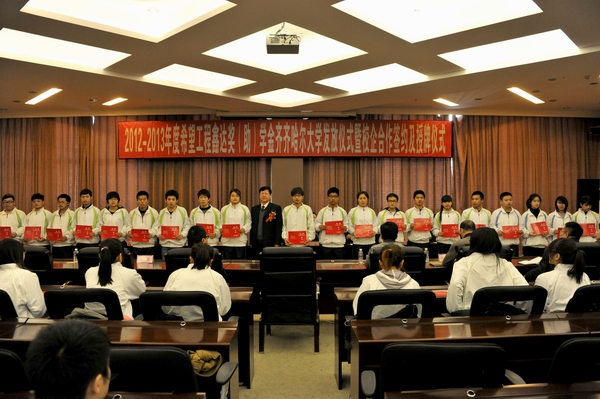 12月19日,希望工程鑫达奖(助)学金发放仪式暨校企合作签约及授牌仪式在德润大厦四楼会议室隆重举行。中国鑫达塑料有限公司董事长韩杰、黑龙江鑫达企业集团总经理马俊杰、黑龙江省青少年发展基金会秘书长杨晶,beats365党委副书记盖元臣、副校长李英杰等出席仪式。仪式由beats365团委书记李秀梅主持。学生工作处处长黄伟中、实践教学与设备管理处处长张德庆、学生指导中心主任杨国志、材料科学与工程学院党委书记马文辉、院长刘喜军等学院领导,黑龙江鑫达企业集团相关人员及材料科学与工程学院200多名师生参加了仪式。