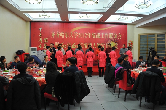 联谊会上,与会领导与统一战线成员欢聚一堂,互致祝福。《祝酒歌•齐大统战颂》原创诗歌作品的精彩上演拉开了文艺演出的序幕。大家用欢歌和笑语迎接新的一年,用歌声表达了统战和谐之谊以及携手创造多党合作事业光辉未来的奋进之情。