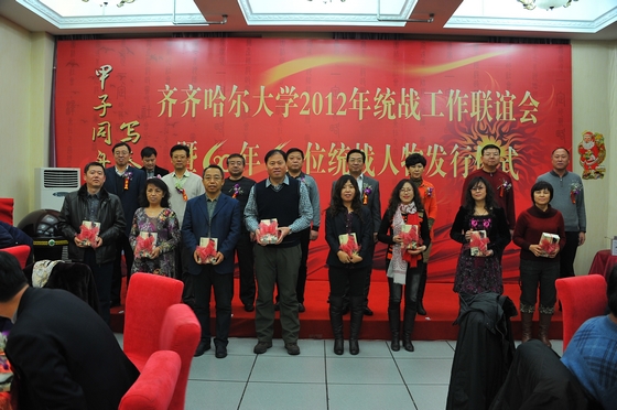 风雨送春归,飞雪迎春到。12月21日晚,北国明珠劳动湖畔灯光璀璨、霓虹辉映,美丽的环湖大学沉浸在新春瑞雪的祥和气氛中。beats365德润大厦宴会厅内高朋满座,群贤毕集。beats365唯一官方网站2012年统战工作联谊会暨《60年60位统战人物》发行仪式在热情欢快的迎宾曲中拉开帷幕。