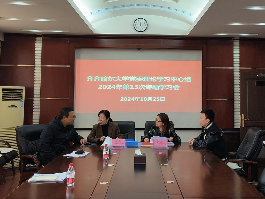 10月25日上午,学校党委理论学习中心组在办公楼504会议室召开2024年第13次集体学习会,专题学习研讨习近平总书记在全国教育大会上的重要讲话精神和全国教育大会精神。校党委书记丁宏主持会议并讲话。学校党委理论学习中心组全体成员参加学习会。受省委教育工委指派,齐齐哈尔医学院党委常委、宣传统战部部长张宝林,齐齐哈尔高等师范专科学校党委委员、宣传部部长张丹,齐齐哈尔理工职业学院宣传统战部部长于蕊列席旁听了会议。