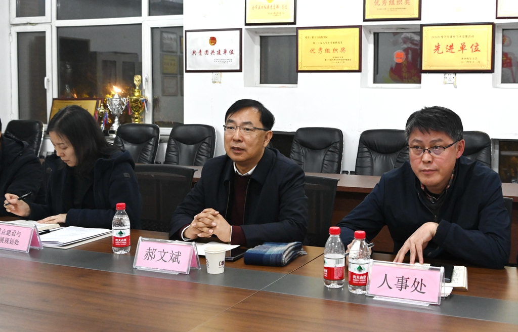 寒区麻及制品教育部工程研究中心主任郑永杰教授详细汇报了工程中心的工作进展,包括工程中心定位任务及目标、工程技术水平和标志性成果、团队建设和人才自主培养、运行管理和条件保障、支持举措等方面的工作情况。轻工与纺织学院党委书记宋秘钊从师资队伍建设、学院发展存在的主要问题及下一步工作设想、充分调动师生参与发展建设积极性方面进行了工作汇报。职能部门负责人针对工程研究中心和轻工与纺织学院发展建设提出了意见建议。