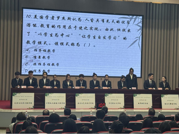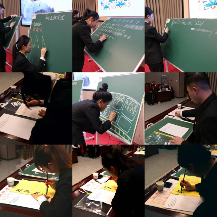 决赛分为个人三笔字书写、板书设计、说课与讲课技能比赛,学院团体知识竞答两个部分。经过角逐,理学院贾国莹获一等奖,马克思主义学院韩彤获二等奖,化学与化学工程学院徐阳阳获三等奖,其余6名同学获优秀奖;教师教育学院获团体一等奖,美术与艺术设计学院获团体二等奖,化学与化学工程学院获团体三等奖,马克思主义学院、计算机与控制工程学院、音乐与舞蹈学院获团体优秀奖,9名指导教师获“优秀指导教师”奖。