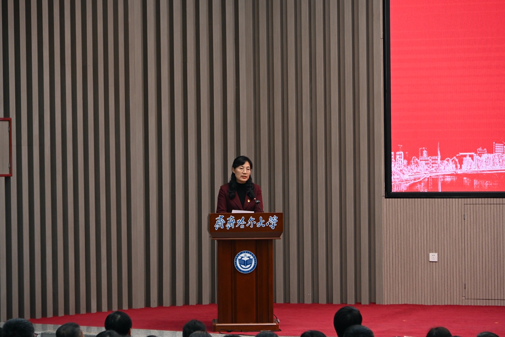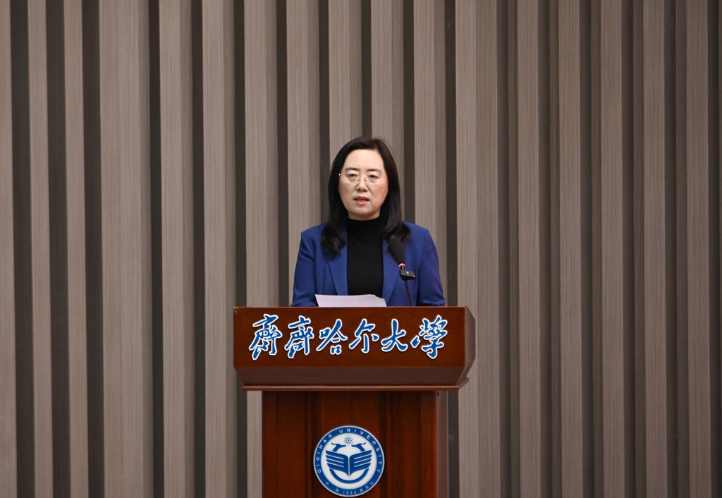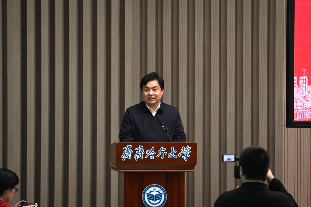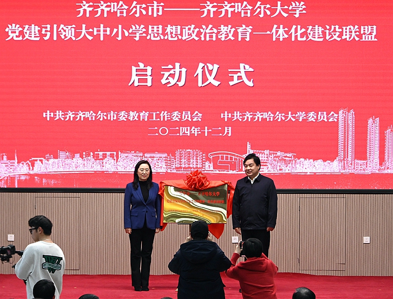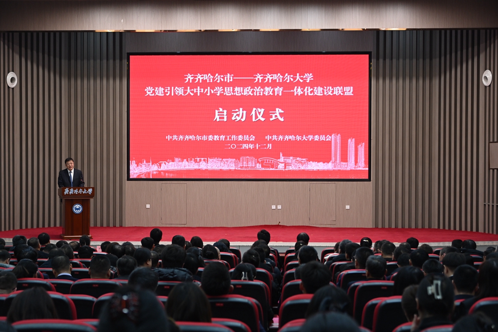 12月10日下午,齐齐哈尔市—beats365唯一官方网站党建引领大中小学思想政治教育一体化建设联盟启动仪式在日新大厦四楼报告厅举行。齐齐哈尔市委副书记、市委教育工委书记刘振江,齐齐哈尔市副市长高淑春,beats365党委书记丁宏,校长、党委副书记郝文斌,党委副书记齐宏伟,黑龙江省民宗委文化宣传教育处处长吴鹏,齐齐哈尔市教育局局长、市委教育工委副书记姜林出席仪式。仪式由校党委副书记张文治主持。