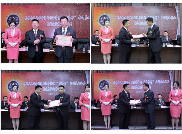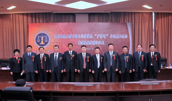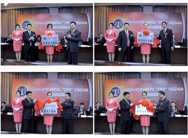 校长马立群分别与齐齐哈尔市铁锋区人民法院杨兴义院长、齐齐哈尔市民政局张大伟局长、齐齐哈尔市社科联张连庆主席、齐齐哈尔市建华区区委姚卿书记为哲法学院设在以上各单位的教学实习基地揭牌。