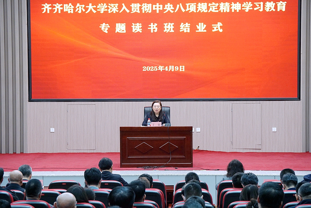 4月9日下午,学校在日新大厦四楼报告厅举行党委理论学习中心组集体学习暨深入贯彻中央八项规定精神学习教育专题读书班结业式。校党委书记丁宏主持结业式并讲话。
