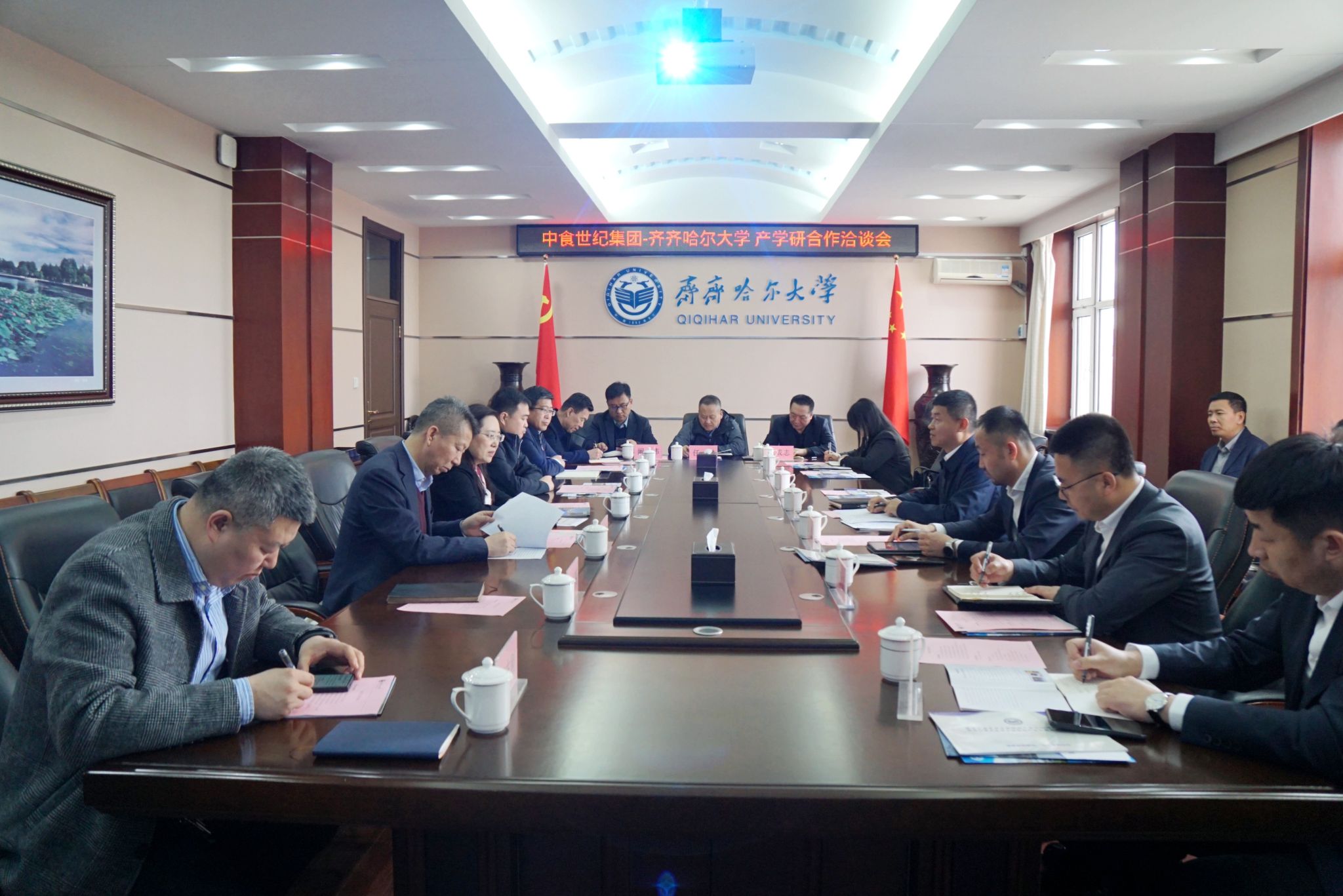 4月25日,中食世纪集团有限公司董事长王文亮、齐齐哈尔市副市长贾兴元带队到校洽谈政校企产学研用合作。校党委书记丁宏陪同调研并主持座谈会,副校长、党委常委丛喜权,副校长、党委常委、组织部长马文辉及相关部门负责同志参加活动。