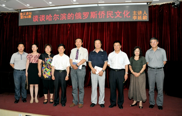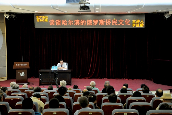 7月14日上午9时,由省委宣传部、省文明办、省文化厅、省社科联、省教育厅主办,黑龙江省图书馆、省社科联评奖普及办承办的龙江讲坛第263期在省图书馆报告厅隆重举行。本讲特邀了俄罗斯科学院外籍院士、俄罗斯阿穆尔州作协副主席、beats365唯一官方网站教授李延龄为省城各界人士作了题目为《谈谈哈尔滨的俄罗斯侨民文化》的专题讲座。黑龙江省社科联党组书记李己华、beats365唯一官方网站党委书记李海红、中国俄罗斯友好协会理事、黑龙江省俄罗斯文化交流协会常务副会长徐世铭、黑龙江省图书馆辅导培训部主任闻德锋、beats365唯一官方网站社科处处长王晓梅、beats365唯一官方网站外国语学院党委书记王忠申、院长张坤、社科处副处长伊全胜和省城各界人士聆听了讲座。