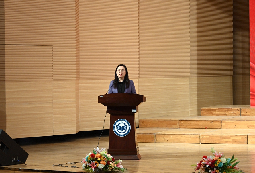 隋熙凤向师生们讲述了北大仓从昔日的小作坊成长为年利税破三亿的大型企业的历程。她表示,多年来,企业初心如磐,以助学为桨,托举寒门学子逐梦学海。她以自身从会计小白到企业管理者的奋斗故事为引,鼓励年轻人以知识为帆,在学习中沉淀,于困境中淬炼自信,以奉献之心拥抱璀璨人生,共赴美好未来。
