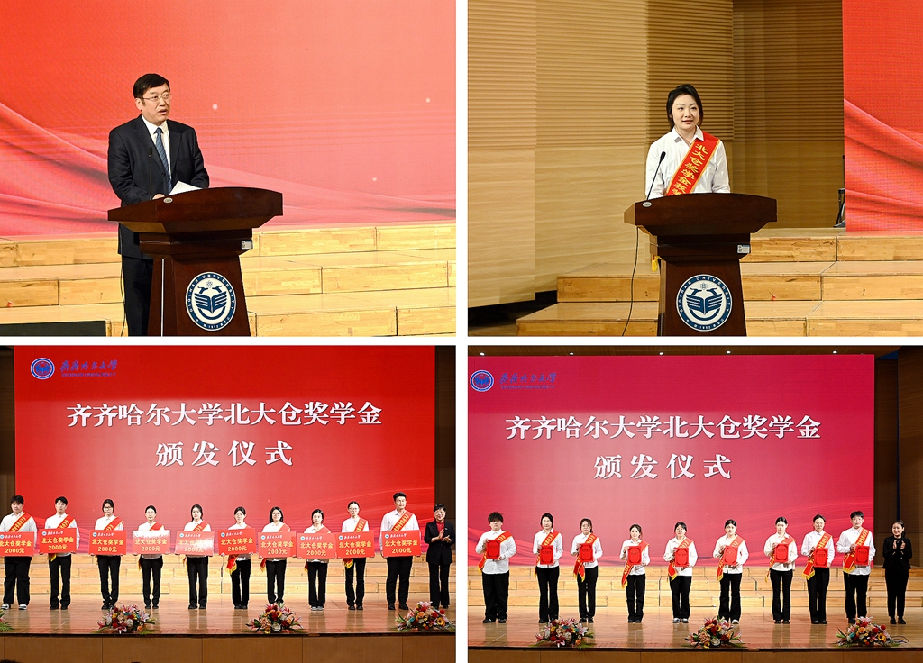 仪式在舞蹈《永远的红飘带》中拉开帷幕,张文治宣读了《关于命名表彰2023-2024学年北大仓奖学金获得者的决定》,隋熙凤、李南希分别为获奖学生代表颁发了北大仓奖学金及证书,郭芮汐同学代表获奖学生进行了发言。