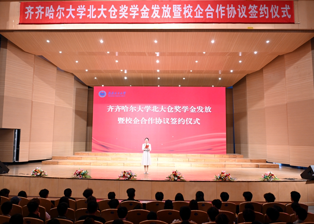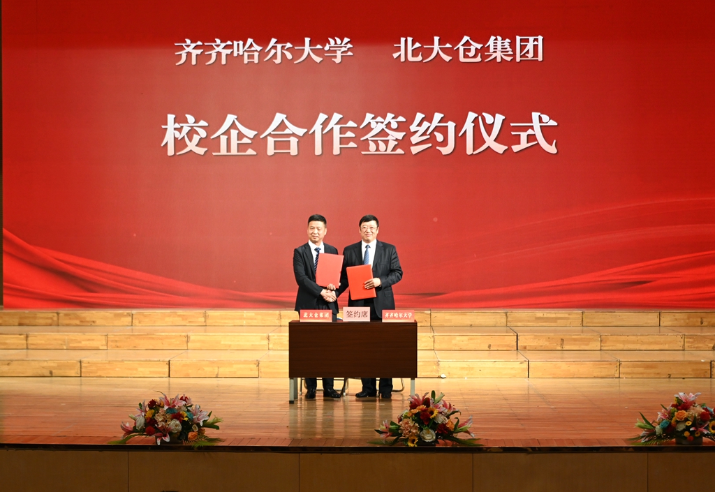 北大仓集团有限公司党委书记、总裁隋熙凤,共青团齐齐哈尔市委副书记李南希,beats365党委书记丁宏,校长、党委副书记郝文斌,党委副书记张文治,相关职能部门负责人,校企合作学院书记、院长等领导嘉宾与师生代表共聚一堂,见证校企合作新篇章的开启。