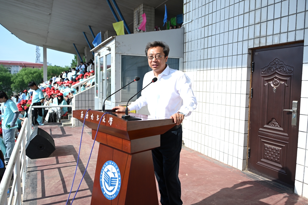 副校长范铁明在致辞时表示,本届田径运动会是一次凝聚人心、振奋精神的盛会,更是一堂生动的“立德树人”实践课。在团结奋进、积极向上的体育竞技氛围中,全体运动员奋勇争先、努力拼搏,取得了运动成绩和精神文明双丰收。希望全校师生员工积极助力学校“体教”深度融合,用体育运动之美展现砥砺奋进、昂扬向上的齐大人精神风貌,以更加强健的体魄、更加饱满的热情、更加昂扬的斗志,为推动学校改革发展汇聚强大合力,奋力书写学校高质量发展新篇章!(点击观看第二十四届田径运动会精彩瞬间)