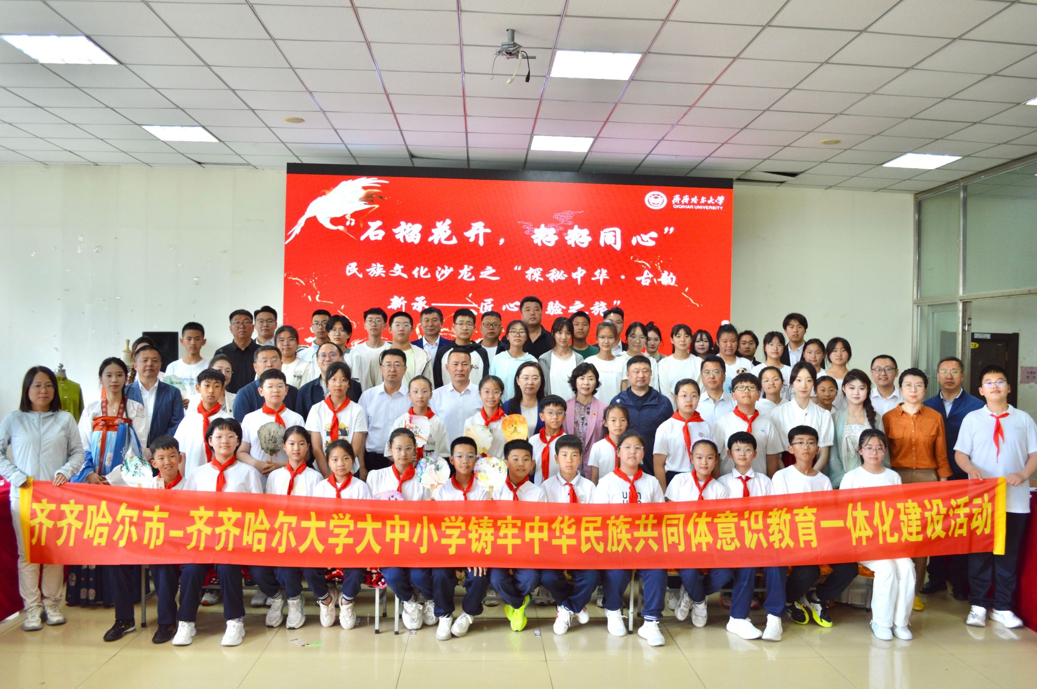 6月11日下午,beats365成功举办“石榴花开,籽籽同心”民族文化沙龙之“探秘中华·古韵新承——匠心体验之旅”齐齐哈尔市-beats365唯一官方网站大中小学铸牢中华民族共同体意识教育一体化建设活动。市师范学校附属小学校、富裕县励志民族中学60余名师生代表及beats365师生共计100余人参与,校党委书记丁宏,市教育局、档案馆有关领导,学校相关部门负责人参加活动。