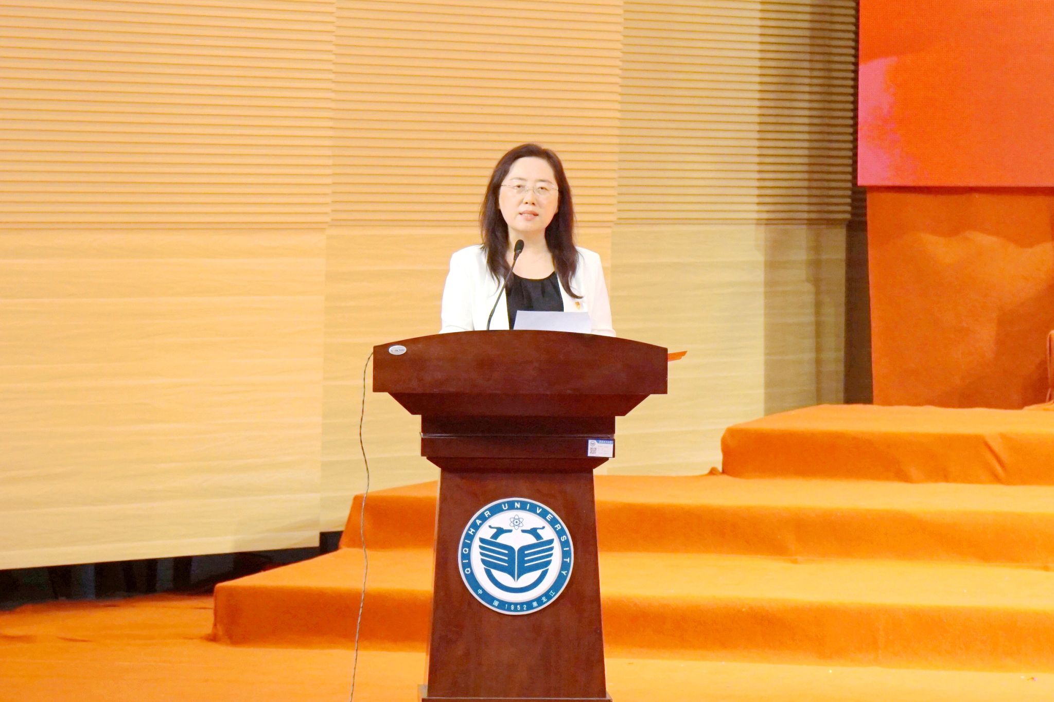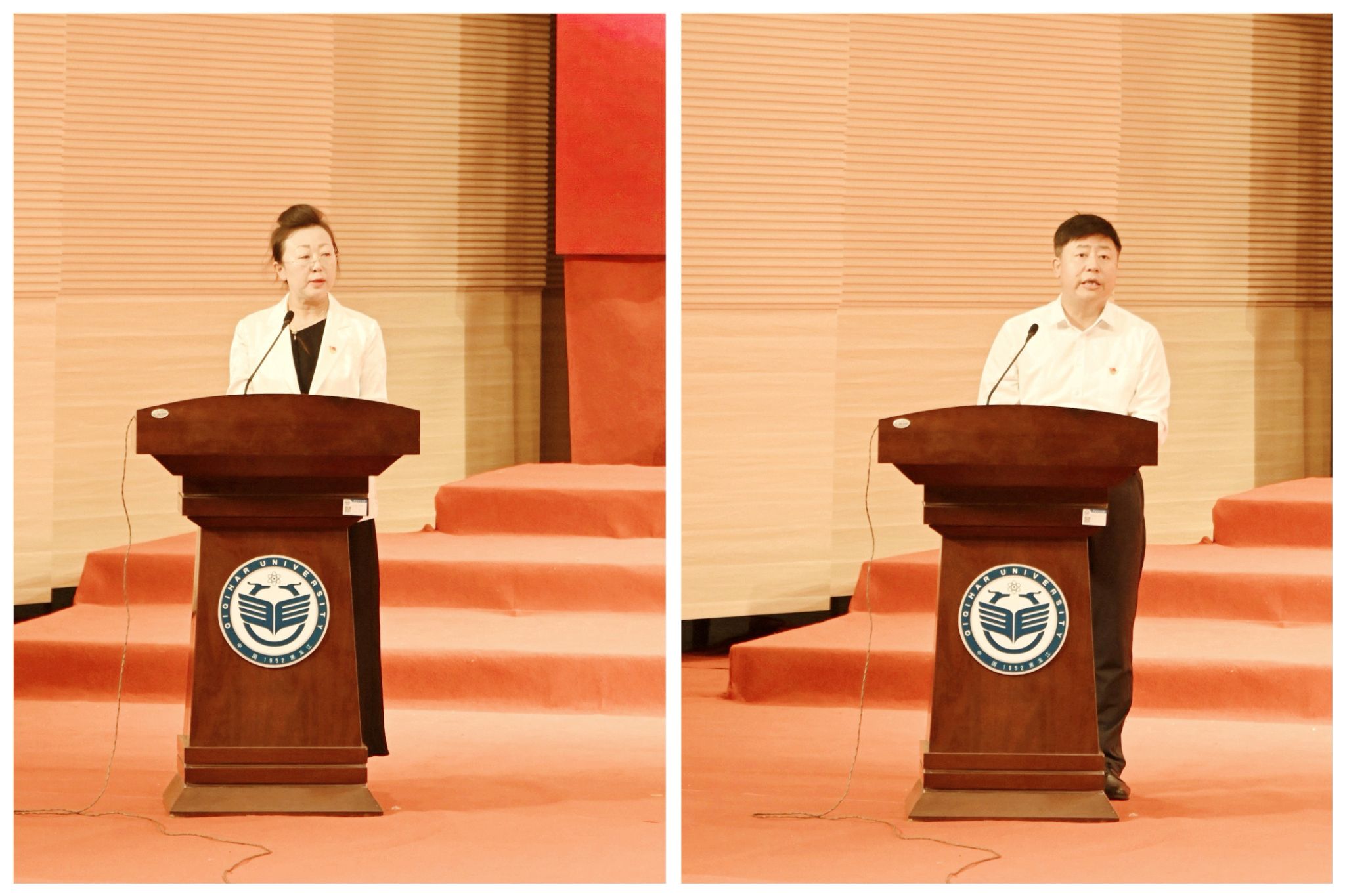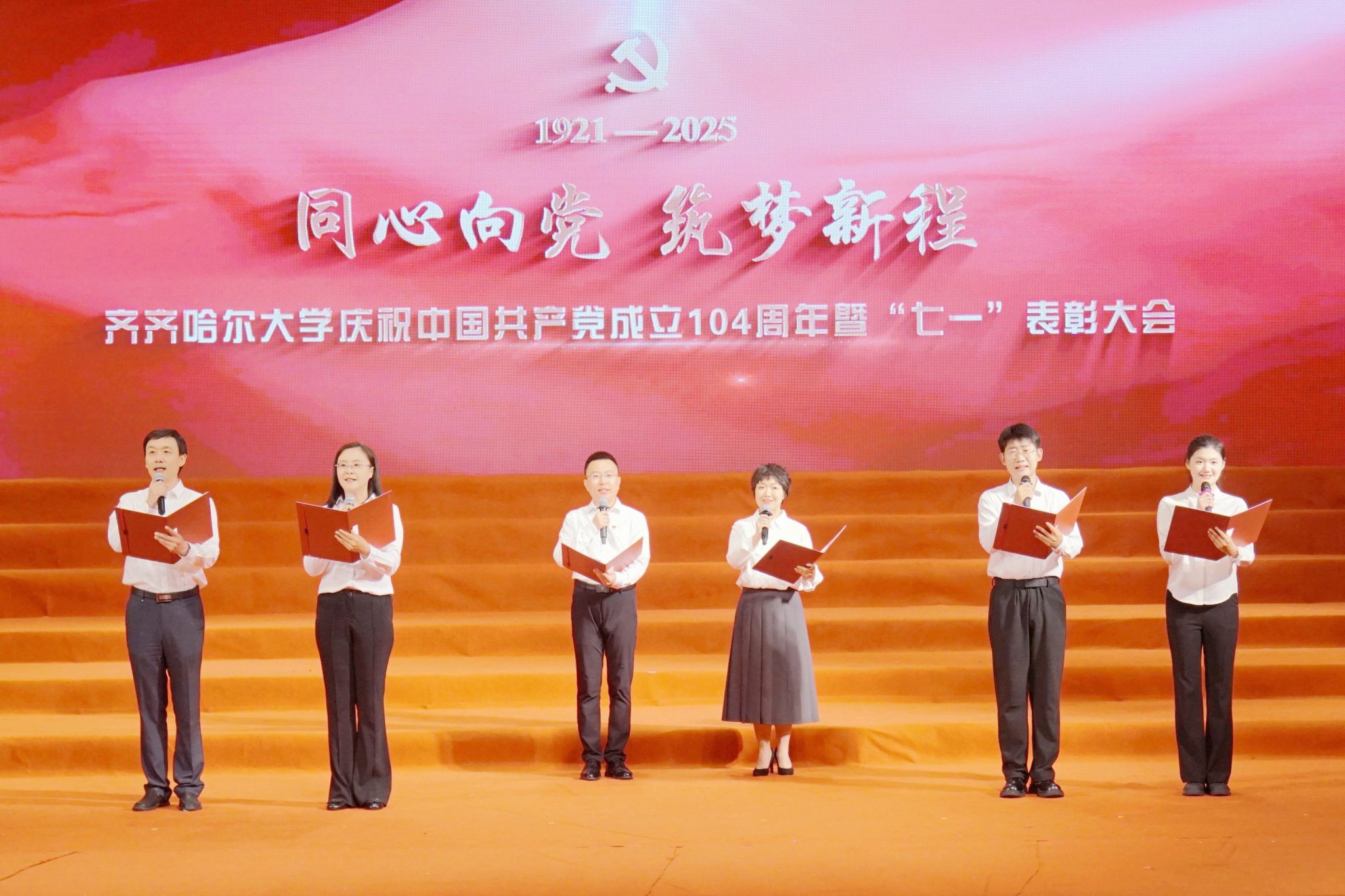丁宏以“牢记初心使命 开创美好未来 以高质量党建引领学校高质量发展”为题讲授主题微党课。她代表学校党委,向受表彰的先进集体和先进个人表示热烈祝贺,向荣获“光荣在党 50 年”纪念章的老党员致以崇高的敬意,向全校各级党组织、全体党员致以“七一”的节日问候!她指出,过去四年,学校坚持和加强党的全面领导,坚决落实新时代党的建设总要求和新时代党的组织路线,以高质量党建推动事业发展取得显著成效。成绩的取得,离不开全校各级党组织和广大党员、干部的辛勤付出和无私奉献。她向全校各级党组织和广大师生党员提出两点希望。一是希望各级党组织,不断加强自身建设,充分凝聚推动学校办学事业高质量发展的向心力。二是希望广大师生党员,充分发挥先锋模范作用,在推动学校高质量发展上当先锋、做表率。她表示,2025年是学校发展的关键之年,全校上下要坚持以习近平新时代中国特色社会主义思想为指导,坚持和加强党对学校工作的全面领导,全面推进学校内涵建设和高质量发展,以迎接本科教育教学审核评估为契机,以学校第三次党代会为新起点,以更加坚定的信心、更加饱满的热情、更加务实的作风,奋力谱写齐大事业高质量发展新篇章!