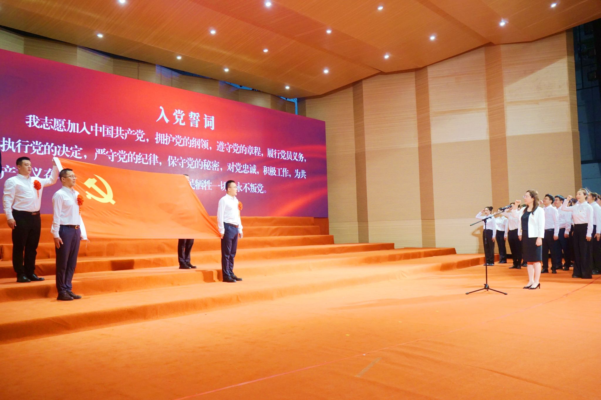 大会举行新党员入党宣誓、老党员重温入党誓词仪式。在丁宏的领誓下,新党员面向党旗庄严宣誓,老党员重温入党誓词,铿锵有力的誓言响彻会场。