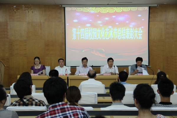 6月28日下午16:00,beats365第十四届大学生校园文化艺术节闭幕总结大会在西主学术报告厅隆重举行。本届艺术节组委会主任、校党委副书记盖元臣,本届艺术节组委会主任、校常务副校长郑喜群,本届艺术节组委会成员、校长助理、党校办主任尹鸥,本届艺术节组委会副主任、校学生工作处处长黄伟中,本届艺术节组委会副主任、办公室主任、校团委书记李秀梅,及本届艺术节组委会相关成员、组委会办公室相关人员和校院两级学生组织主要学生干部、各班级、团支部代表200余人参加了闭幕总结大会。大会由校团委书记李秀梅主持。