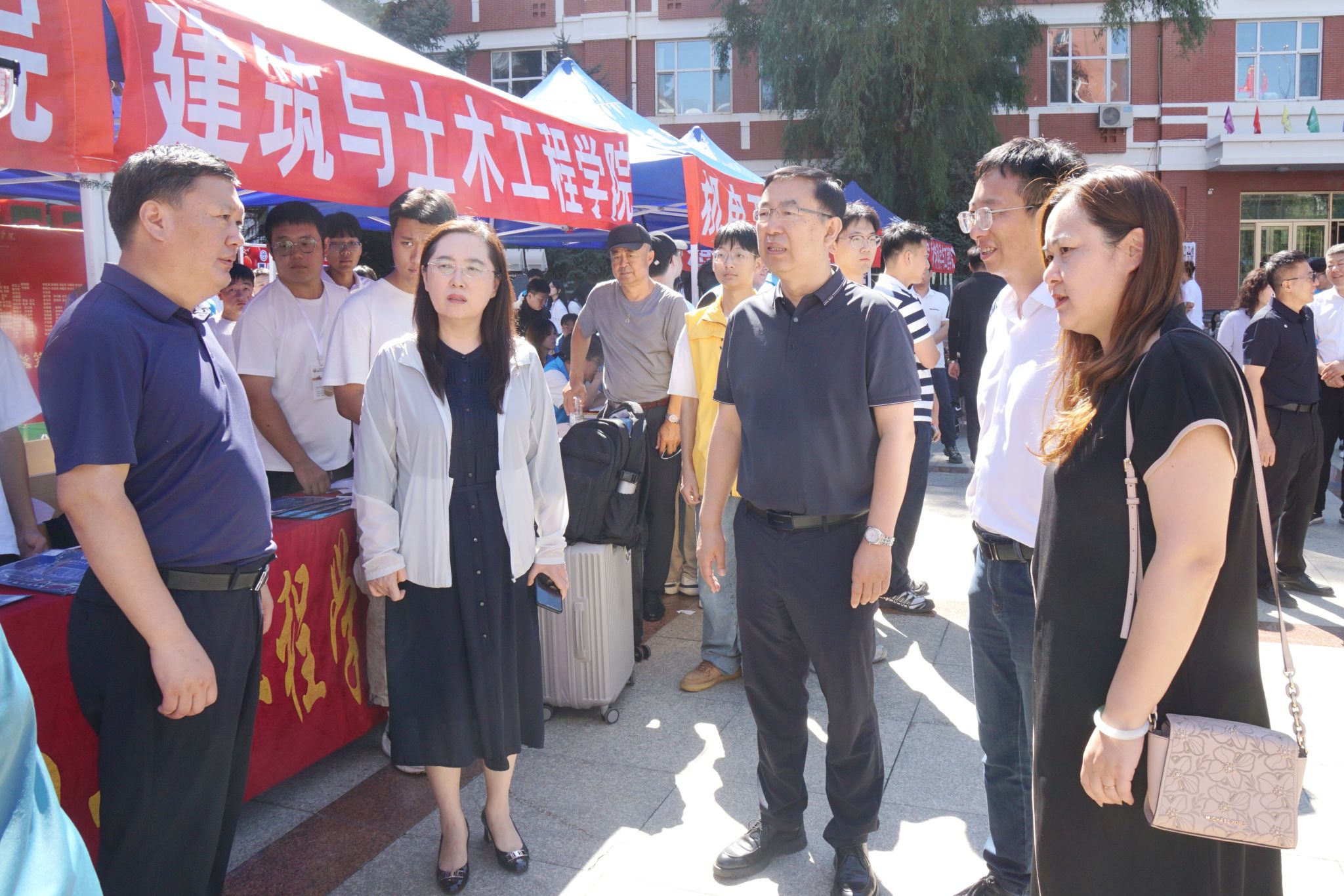 校党委书记丁宏,校长、党委副书记郝文斌深入“两站一场”,并带领全体领导班子成员走访中区、东区各学院迎新点,详细了解迎新工作进展,与新生及家长亲切交流,欢迎他们加入beats365唯一官方网站温暖大家庭,并向参与迎新工作的师生以及志愿者表示慰问。