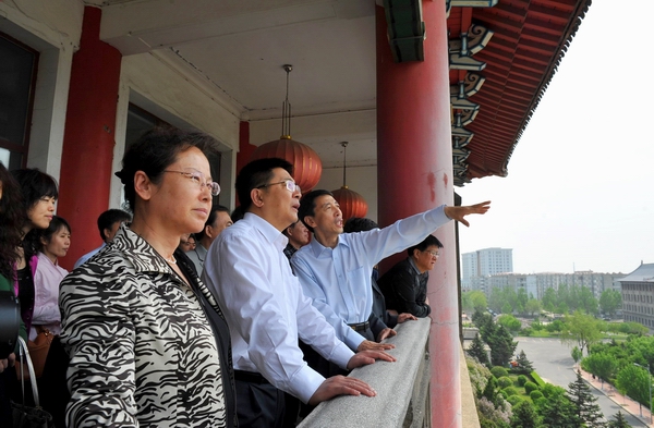 座谈会前,谷焕民、高晚欣等分别陪同李海红书记一行参观考察了实验室、先进的教育教学设施和校园文化景观。