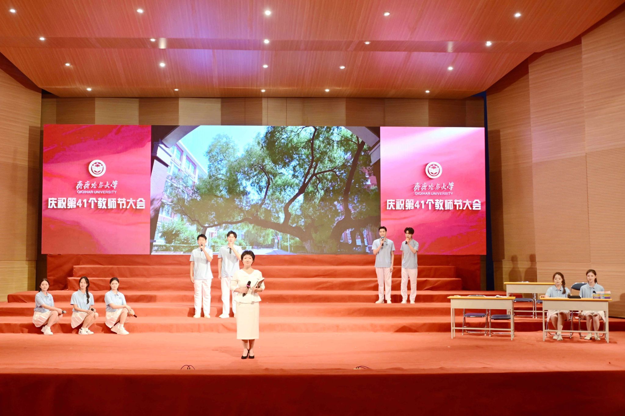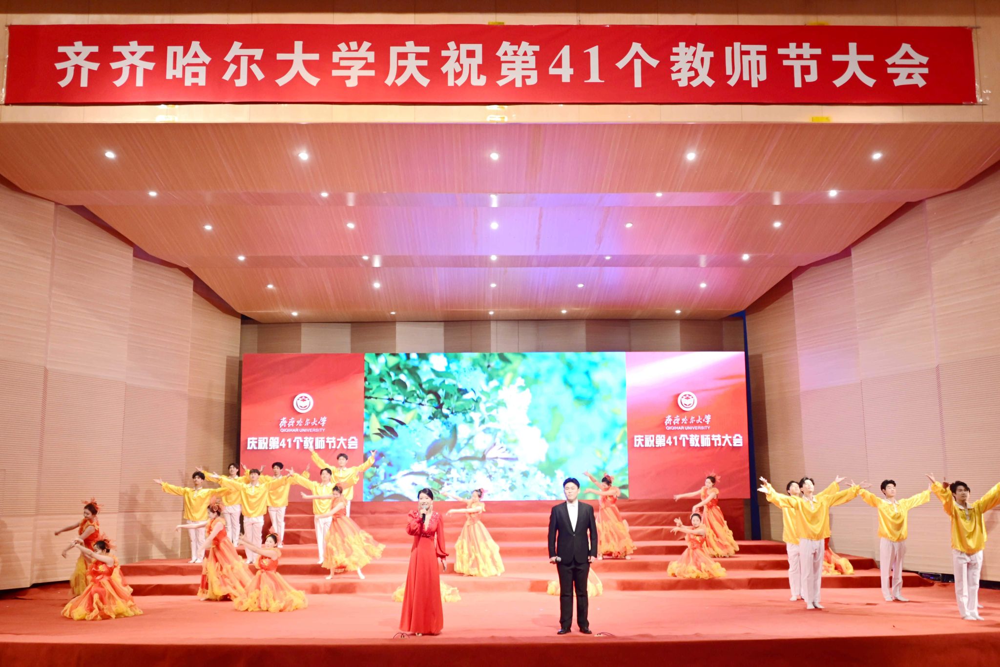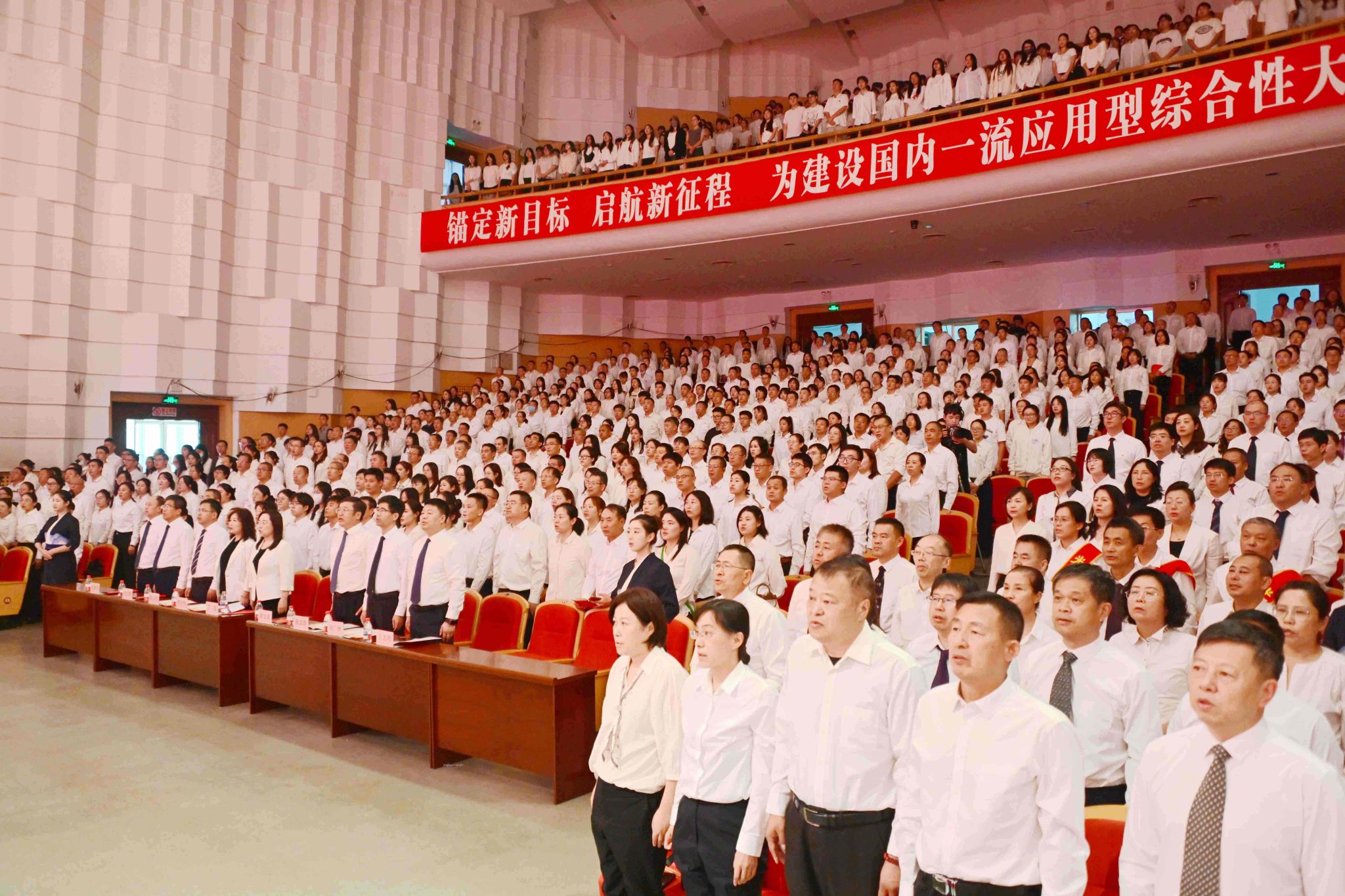 9月10日,学校在音乐厅举行庆祝第41个教师节大会,深入学习贯彻习近平新时代中国特色社会主义思想、党的二十届三中全会精神和全国教育大会精神,大力弘扬教育家精神,团结和激励全校教职工坚守立德树人初心,勇担教育强国时代使命,为建设国内一流应用型综合性大学而奋斗。校领导班子全体成员出席大会,校长、党委副书记郝文斌主持大会。