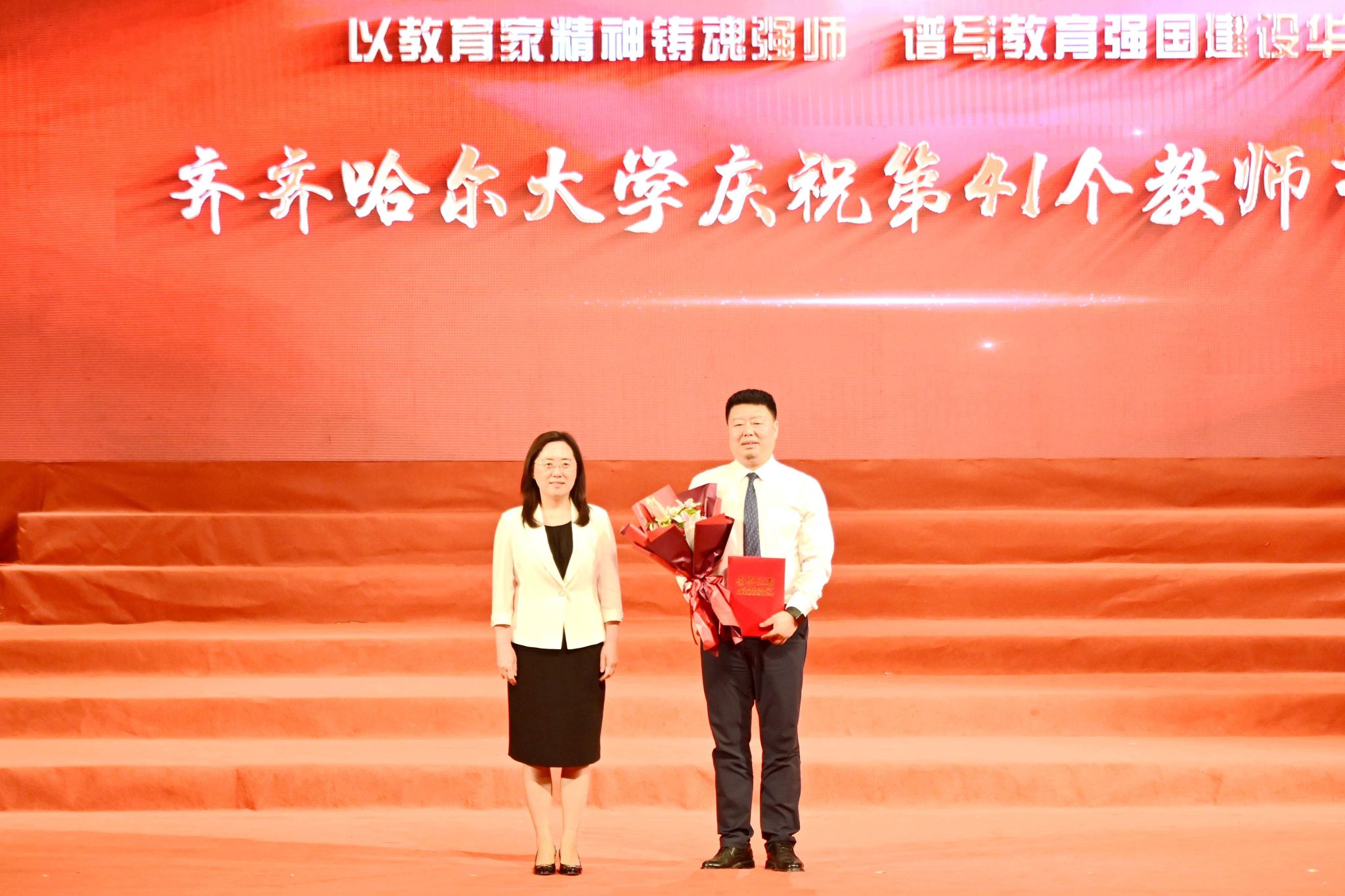校党委书记丁宏代表学校党委向全校教职员工致以节日问候,向受表彰的集体和个人表示热烈祝贺,向为学校改革发展倾注全部心血、作出卓越贡献的老教师、老同志致以最崇高的敬意!她指出,过去一年,在全体教职员工的共同努力下,学校事业呈现良好发展态势。一系列历史性成绩的取得,印证着一个73载历久弥新的道理:齐大的每一步跨越,都离不开每位教师的智慧与汗水;齐大的每一份荣光,都属于每一个默默付出的齐大人!