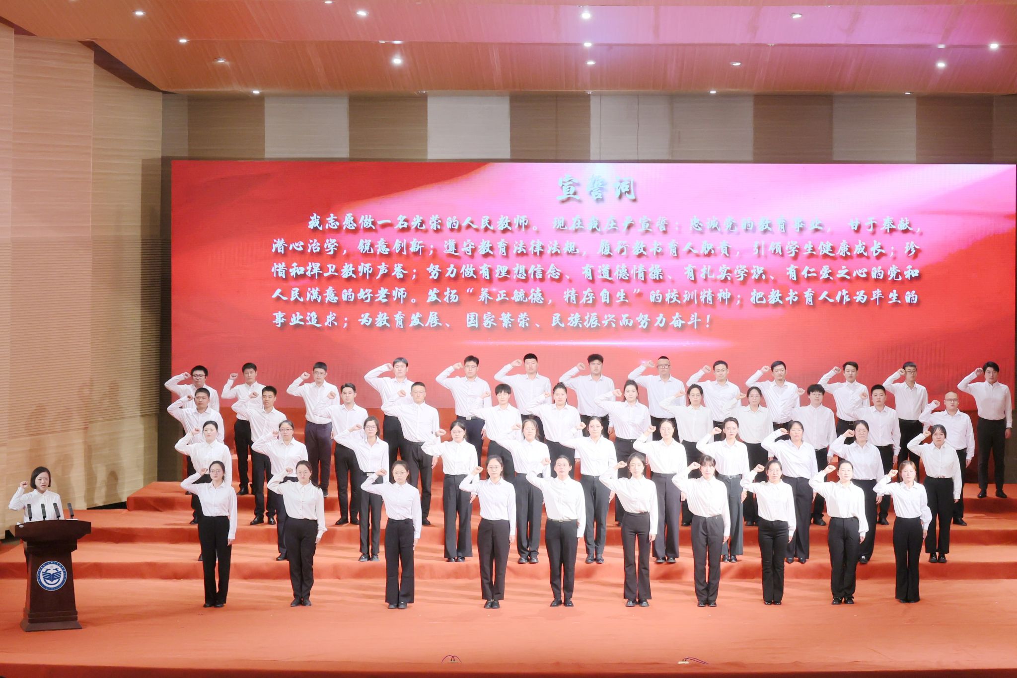 在庄严的气氛中,新教师代表进行入职宣誓。