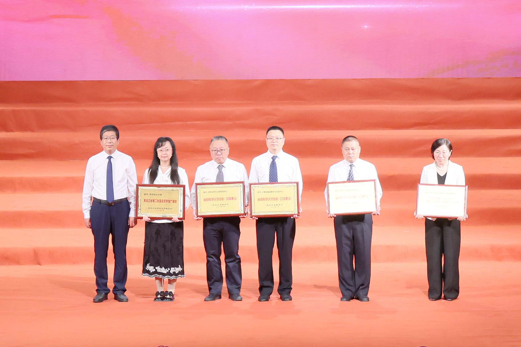 过去一年,学校全体教职工将教育家精神作为共同价值追求,爱岗敬业、锐意进取、勇担使命,在教学、科研、育人、管理等各方面取得显著成效,涌现出一批先进典型,获得多项荣誉。校领导为荣誉获得者颁奖。